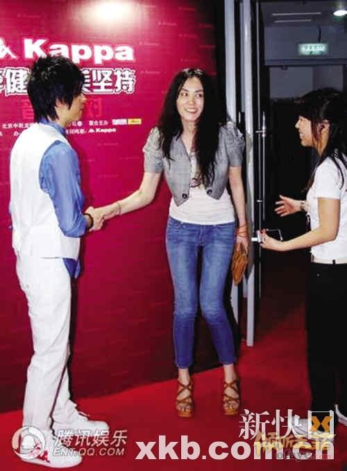 王菲当晚脸上一直挂着淡淡的笑容,一身时尚休闲的装扮,有记者注意到,很久没有出现在媒体的视线中的“菲女”窦靖童也随