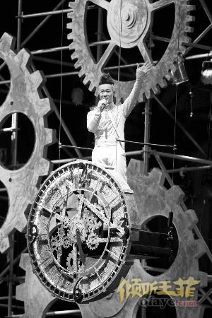本次演唱会为表现“时间”主题,舞台上摆满各种扭曲造型的钟,据说创意来自陈奕迅《陀飞轮》歌词中描绘的意境,形状大小不一的齿轮代表着时间流逝。