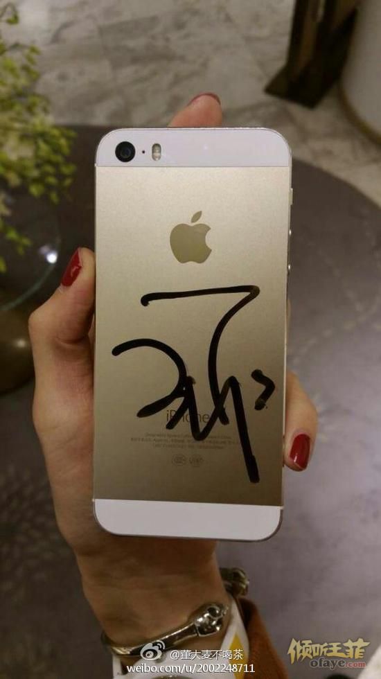 王菲在手机背面为粉丝签名