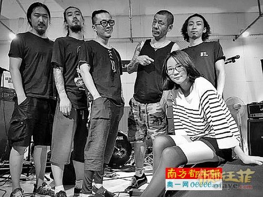窦佳嫄在微博宣传单曲:“第一次发声,有点激动,希望大家喜欢。”她和Tim ers乐队成员周骏(左一,丢火车乐队贝斯)、孙凌生(右二, 果味V C原主唱)、夏侯哲(右一,音乐制作人)一起。