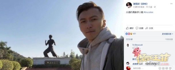 原来谢霆锋到佛山市顺德李小龙乐园,和李小龙雕像玩自拍并留言:“李小龙,永远的偶像。”