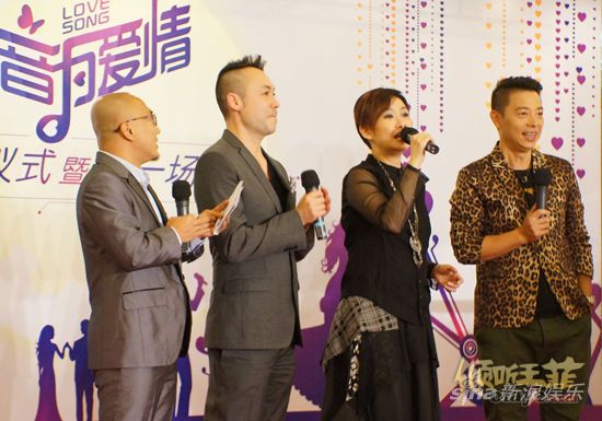 左二起:雷宇扬、汤宝如、阮星航 新浪娱乐讯 国内首档情歌真人秀节目《音为爱情》9月19日在广州越秀区文化中心启动,三大明星评委汤宝如、雷宇扬、阮星航现身,与因音乐结缘的99对情侣们现场分享爱的故事。王菲离婚轰动娱乐圈,汤宝如表示人家的私事不好评价,希望他们都幸福,自己最开心的是王菲不会去出家。结婚不到一年的雷宇扬笑称自己刚刚才结婚,没资格讲别人离婚的事。