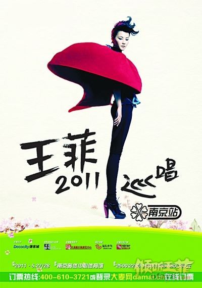 南京站海报昨天,王菲2011巡演首站发布会在广州举行。主办方江苏新天地演艺中心总经理杨润森在现场就歌迷关心的之前公布的票价等问题现场解答。广州是其2011年内地巡演四城中第一站,据杨润森介绍:“3月王菲香港巡演一结束,设备就立刻往广州运!”