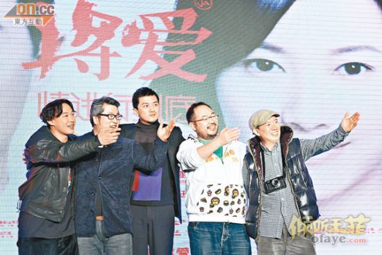 陈奕迅与李亚鹏和杜汶泽(右一)等齐为电影宣传新浪娱乐讯 北京时间1月11日消息,据香港媒体报道,亚洲天后王菲全力支持老公李亚鹏投资的电影,游说陈奕迅(Eason)世纪合唱主题曲,尽全力帮老公打造声势,一直蒙在鼓里的李亚鹏激动落泪。据知,王菲再次推出新歌,吸引唱片公司虎视眈眈,掷天价一千万利诱王菲出碟。环球唱片高级副总裁黄剑涛透露对王菲出碟有兴趣,但首先要完成与陈奕迅续约的工作。