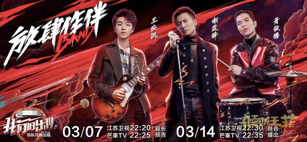 海报,节目将于3月14日起每周六22:30江苏卫视、22:35芒果TV联合播出。据悉,谢霆锋、王俊凯、萧敬腾将合作组建乐队,摇滚酷盖,热情怒放!