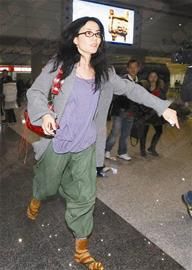 天后王菲所到之处,必定拥趸无数。上周末她携童童到香港会友购物,让当地记者混战一番,甚至还引得外籍人士围观,险生意外。如今,王菲母女回到北京 ,竟然在机场三号航站楼里迷失……3月29日晚,王菲出现在首都机场出口,穿着毛袜加人字拖,一条绿色灯笼裤,素装简颜,身旁是穿着白色外套的窦靖童。手推车上是蛇皮袋……而王菲的这身行头也被媒体披露为时尚搭配。 欣欣