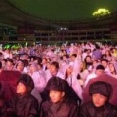 台边的楼梯冲上台,并以双手熊抱偶像,王菲毫无招架能力,虽然她仍极力保持镇定,但