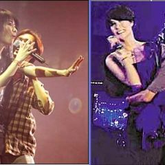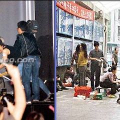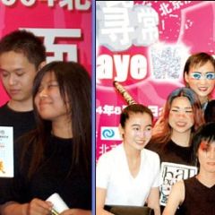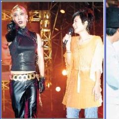左2:2004.06 在苏州为中央电视台《同一首歌》节目演出中,然有一名热情的内地男歌迷由