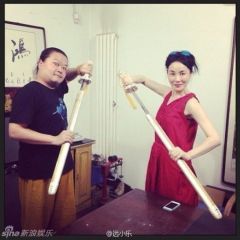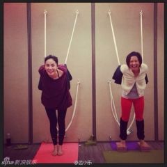 有网友找到王菲与朋友的合照,不在舞台上的王菲原来非常搞怪,她与友人玩瑜伽时开怀大笑,更与朋友一起拿着剑扮侠女,天后果然魅力不减。